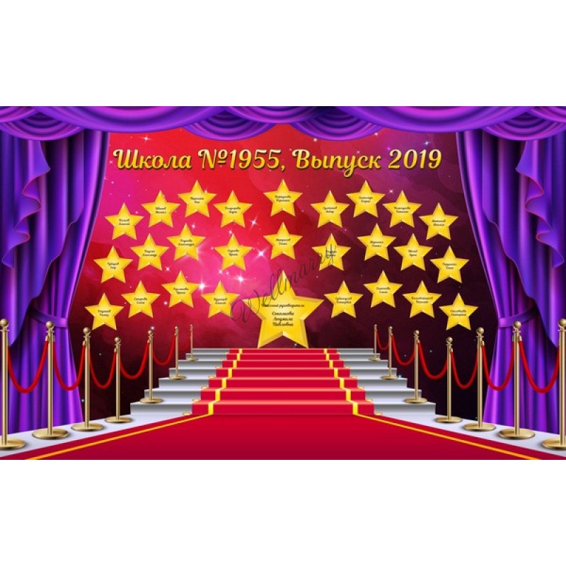 Баннер пресс-волл на выпускной (макет "Красная дорожка", ПОД КЛЮЧ с печатью, доставкой, монтажом и вывозом)