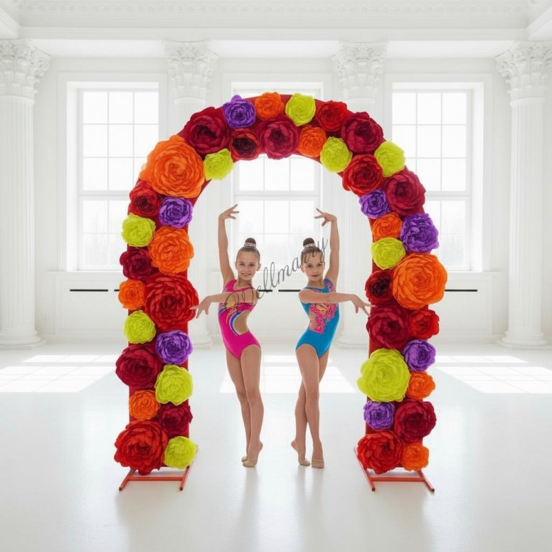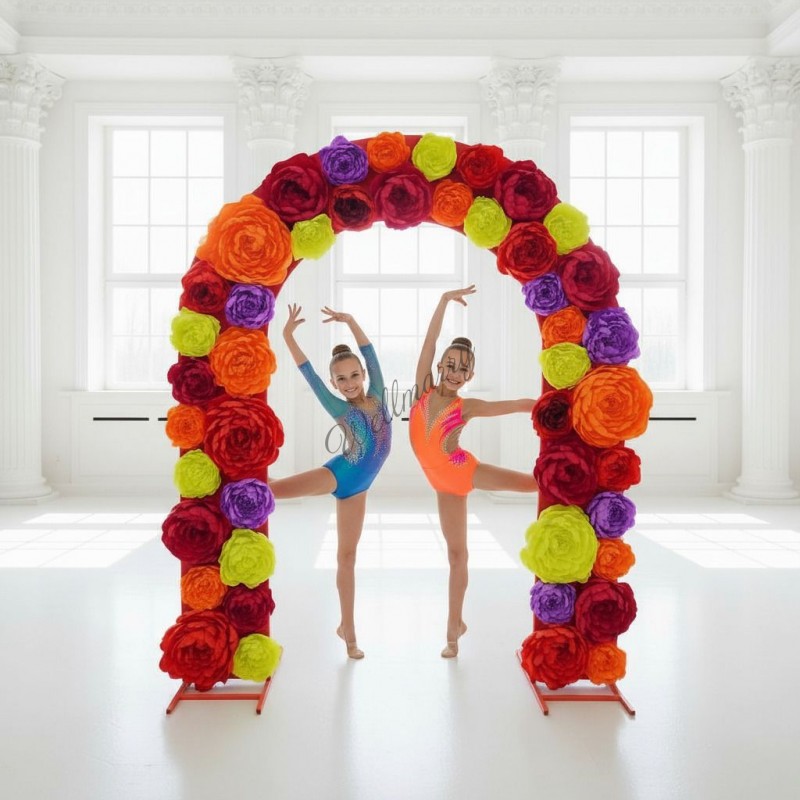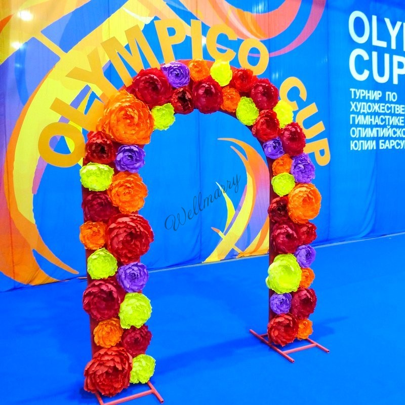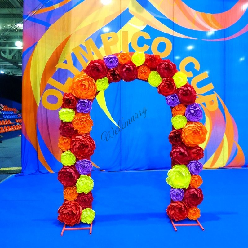 Размер арки с бумажными цветами на фото: высота*ширина 250*220 см.