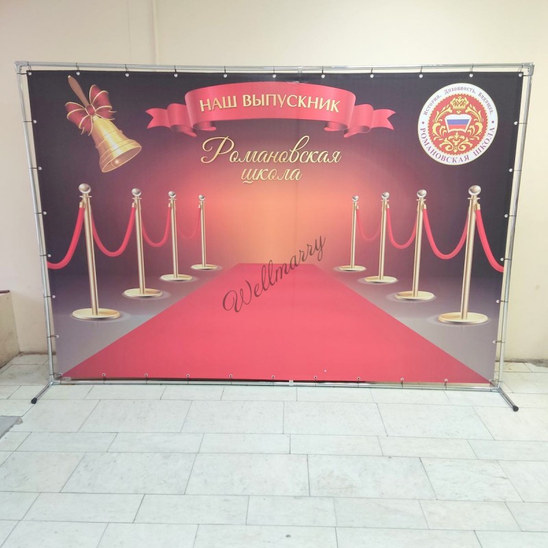 Баннер пресс-волл на выпускной (макет "Наш выпускник", ПОД КЛЮЧ с печатью, доставкой, монтажом и вывозом)