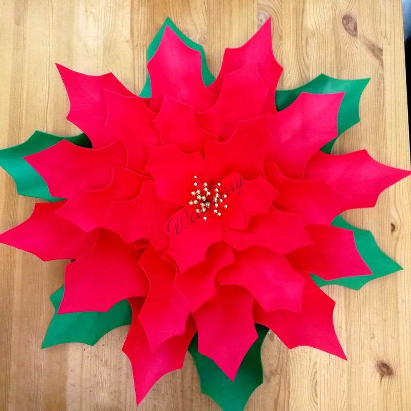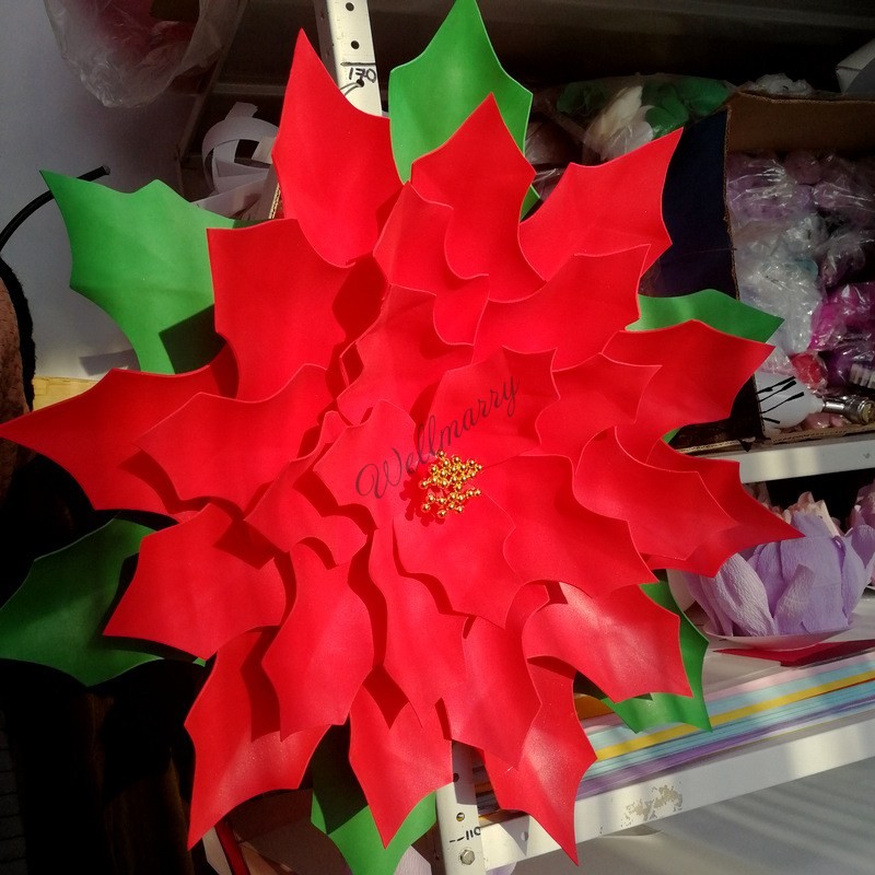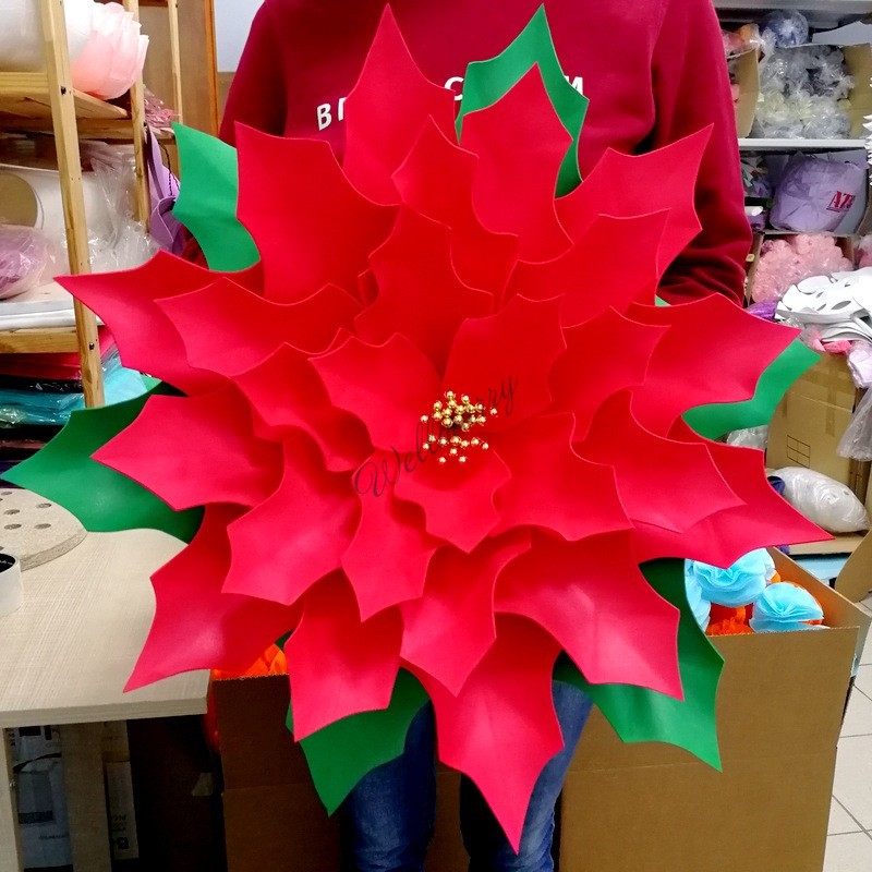 Влагоустойчивый цветок "Пуансеттия" выполнен из фоамирана красного цвета. Цветок можно мыть под прохладной водой, протирать влажной салфеткой, использовать для декора в дождливую погоду.