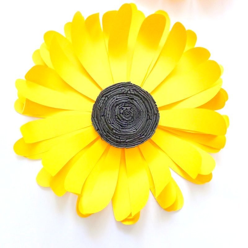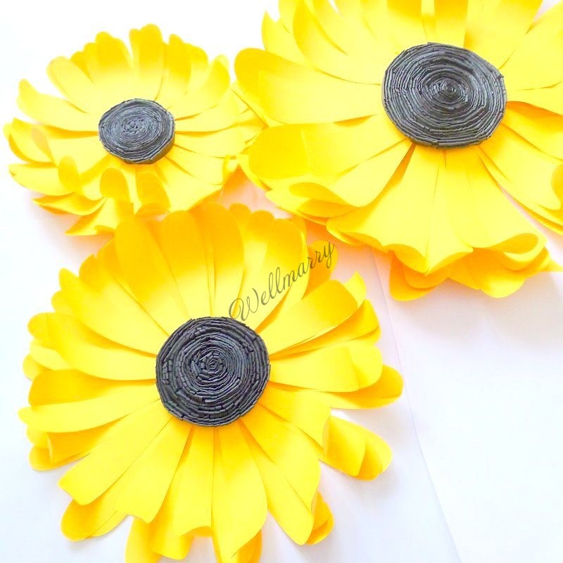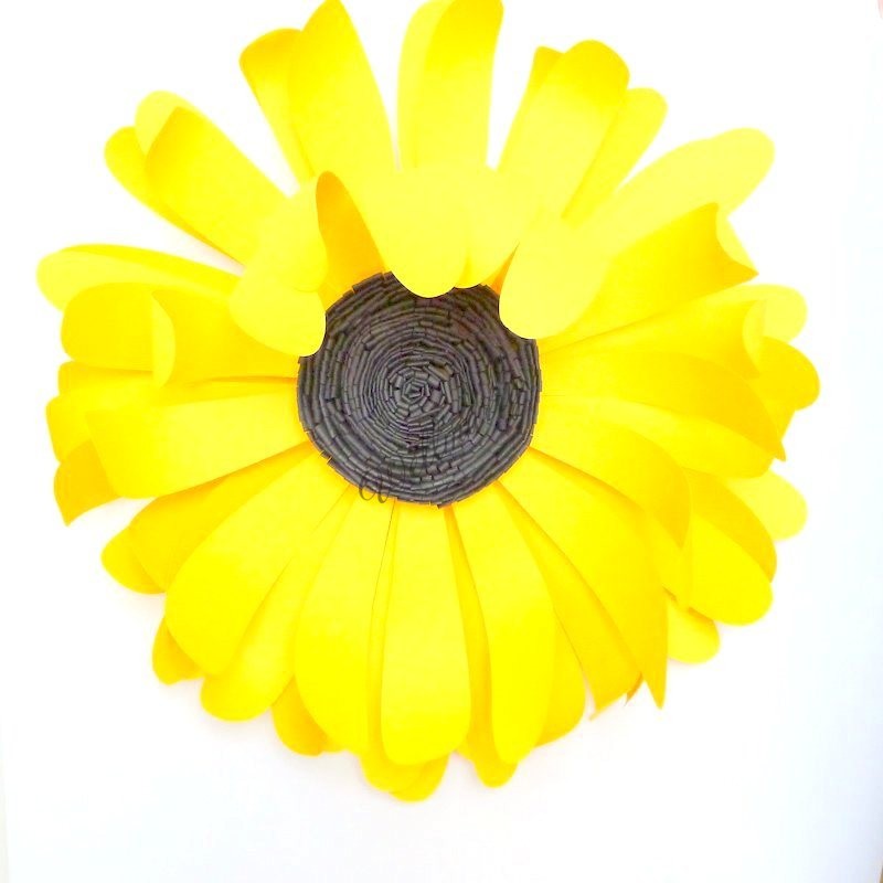 Бумажный цветок для оформления "Солнышко" выполнен из дизайнерской бумаги желтого цвета.