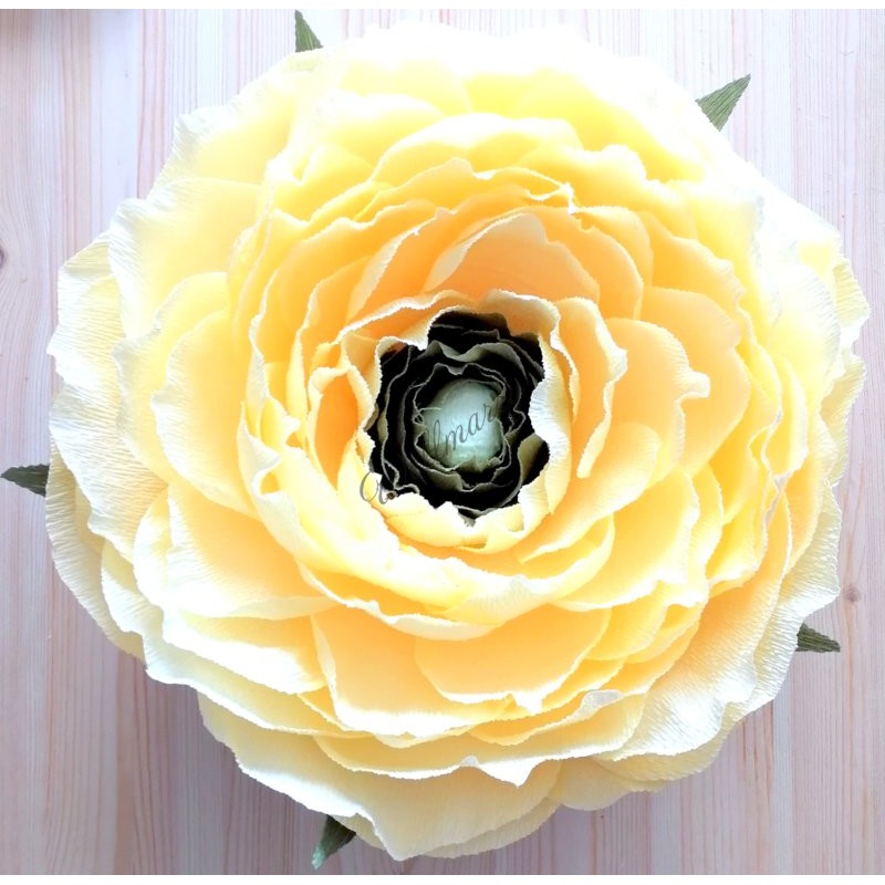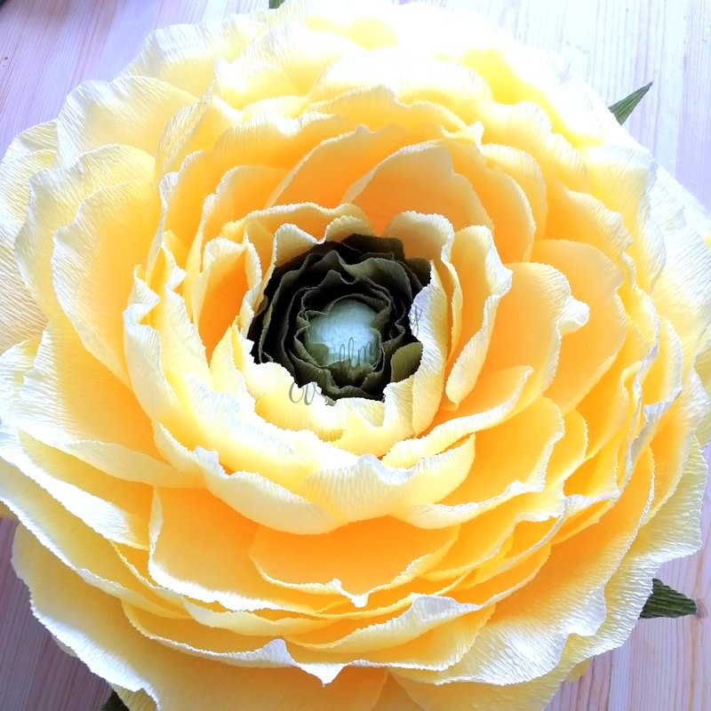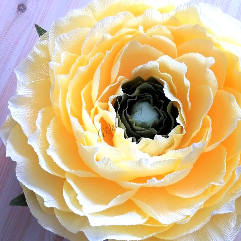 Бумажный цветок для оформления “Ранункулюс" выполнен из гофрированной бумаги светло – желтого цвета.