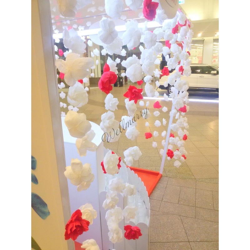 • стены из бумажных цветов