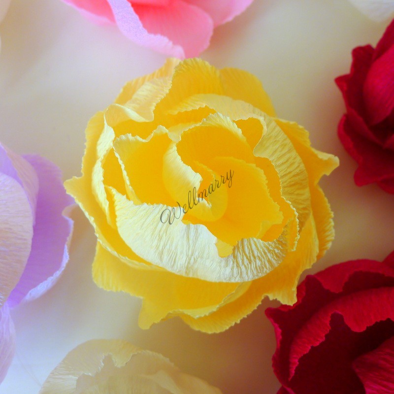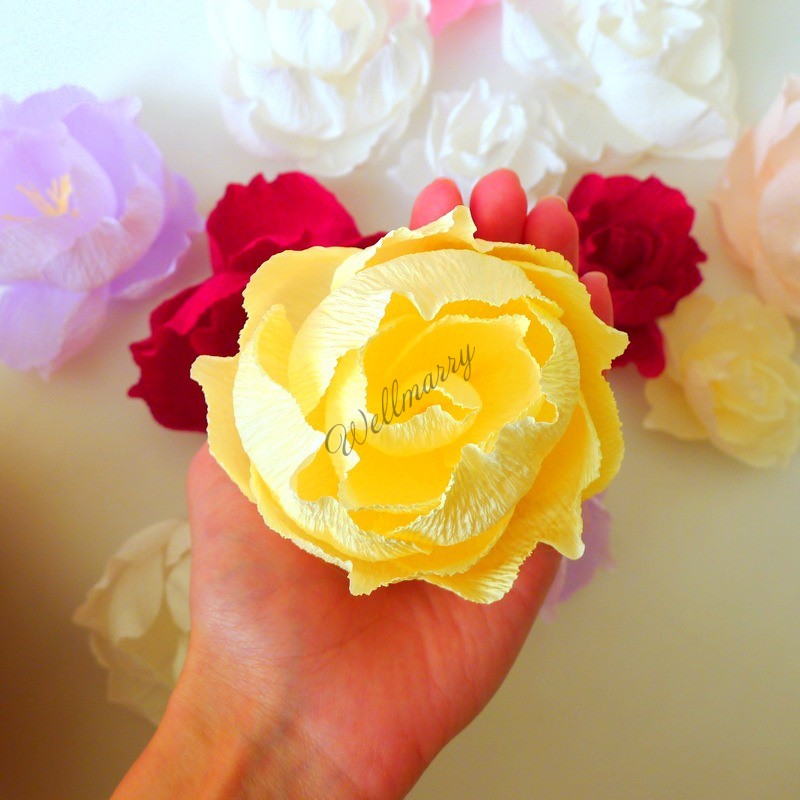Бумажный цветок "Маленький пион" выполнен из гофрированной бумаги желтого цвета, прекрасно подойдет для оформления витрины, стены, свадьбы, дня рождения или любого другого мероприятия.