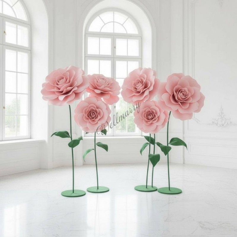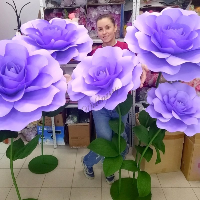 Ростовой цветок "Роза" из качественной дизайнерской бумаги может быть выполнен в разных цветовых гаммах. Гигантские цветы на ножке прекрасно подойдут для оформления фотозоны, витрины, свадьбы, дня рождения или любого другого события.