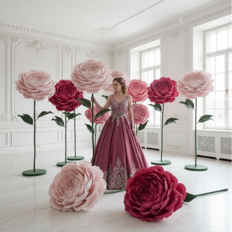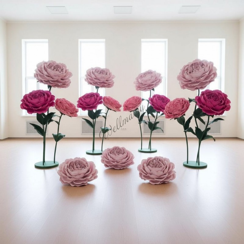 Влагоустойчивый ростовый цветок "Пион розовый" выполнен из фоамирана розовых оттенков. Гигантские цветы на ножке прекрасно подойдут для оформления фотозоны, витрины, свадьбы, дня рождения или любого другого события. Цветок можно мыть под прохладной водой, протирать влажной салфеткой, использовать для декора в дождливую погоду.