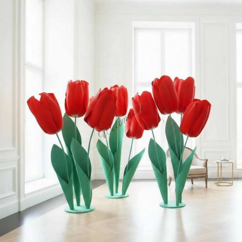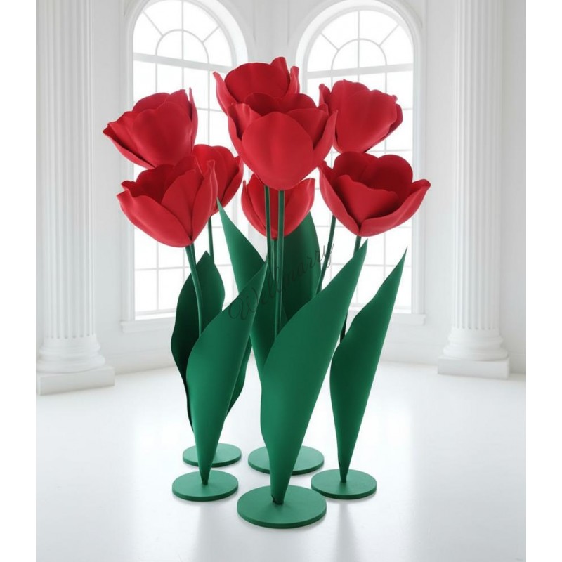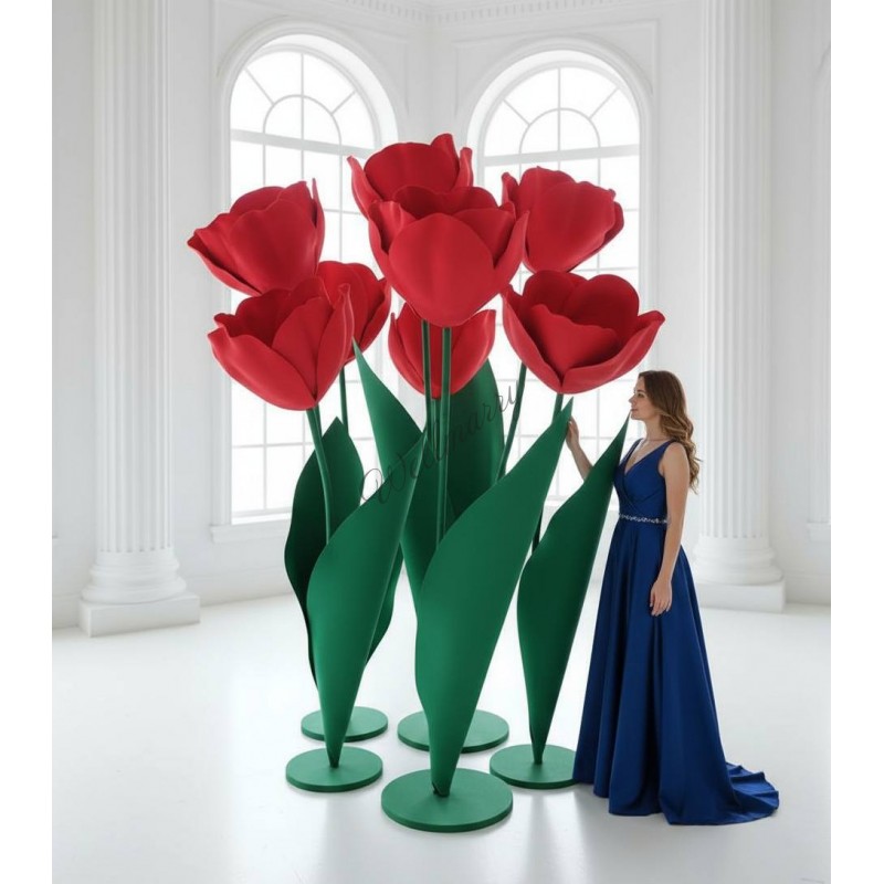 Ростовой цветок "Тюльпан красный" выполнен из фоамирана красных оттенков. Цветок можно мыть под прохладной водой, протирать влажной салфеткой, использовать для декора в дождливую погоду. Гигантские цветы на стебле прекрасно подойдут для оформления фотозоны, витрины, дня рождения, свадьбы или любого другого события.