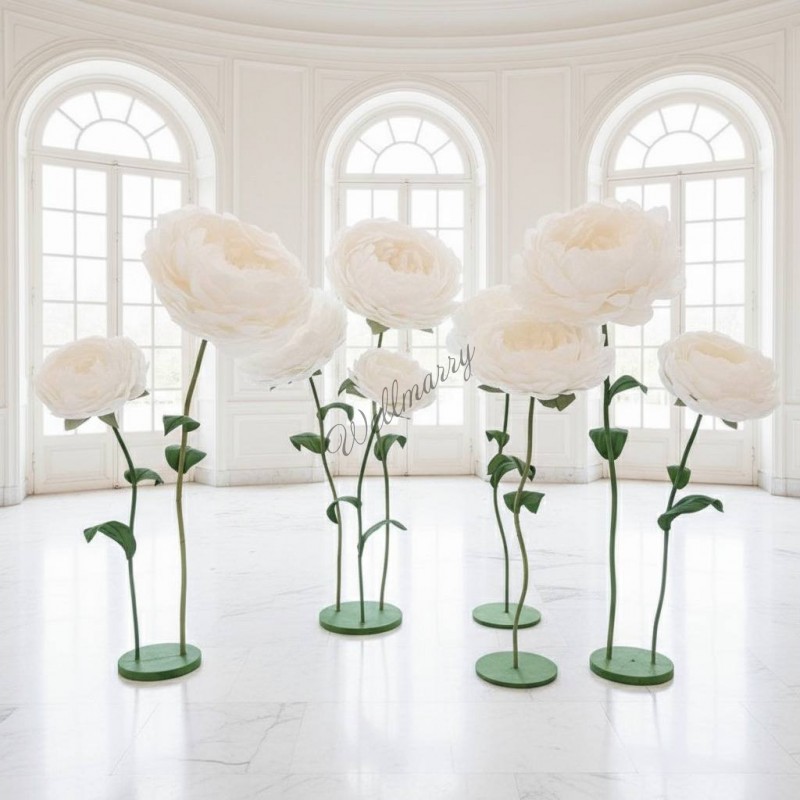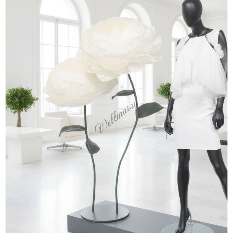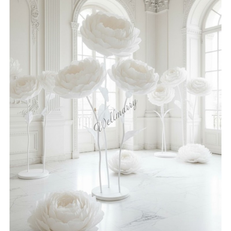 Ростовой бумажный цветок "Белый пион White/Green" выполнен из гофрированной бумаги белого цвета, стебель зеленый, светло-зеленый или может быть любого цвета. Цветы на ножках прекрасно подойдут для оформления фотозоны, витрины, дня рождения, свадьбы или любого другого события.