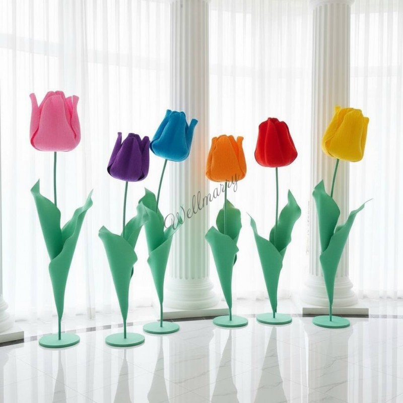 Ростовой цветок "Тюльпан" (влагоустойчивый) может быть выполнен из фоамирана любой цветовой гаммы (напишите нужный цвет в комментарии). Материал можем предоставить разного цвета, исходя из ваших цветовых предпочтений, или покрасить. Цветок можно мыть под прохладной водой, протирать влажной салфеткой, использовать для декора в дождливую погоду.