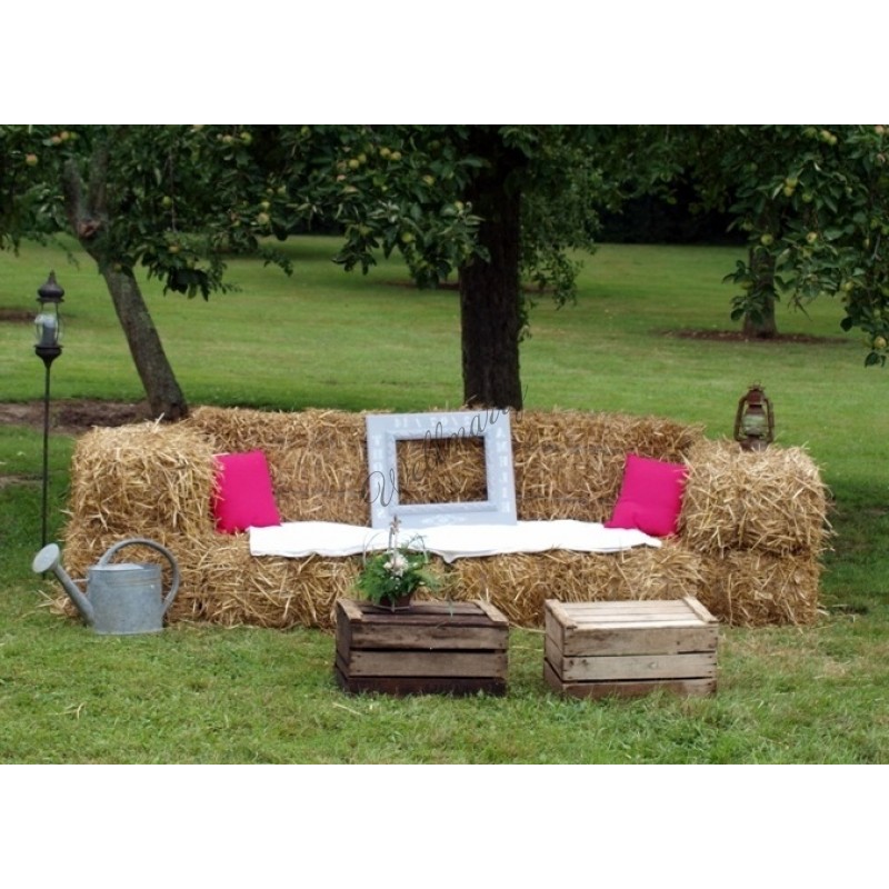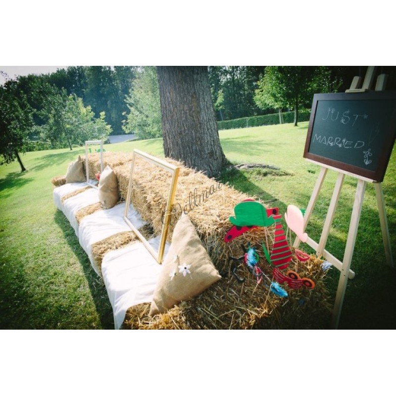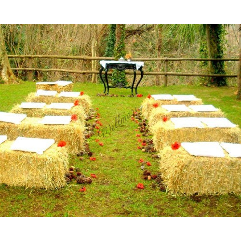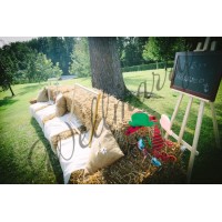 Специально отобранная солома в тюках пшеничная золотистая. Обладает свежим ароматом. Данный элемент изящно впишется как в оформление торжества, так и в фотосессию на свадьбу или любое другое событие.